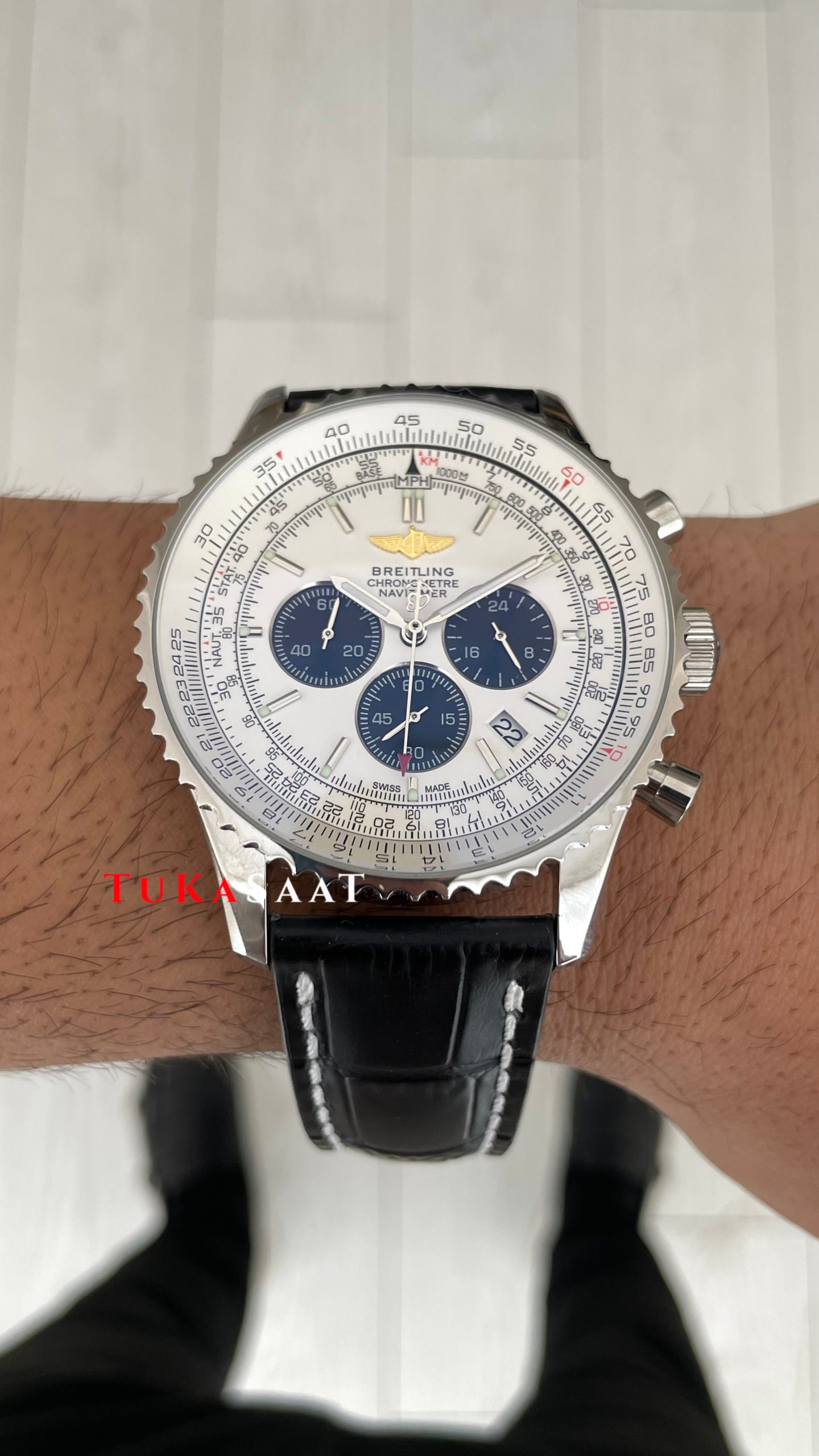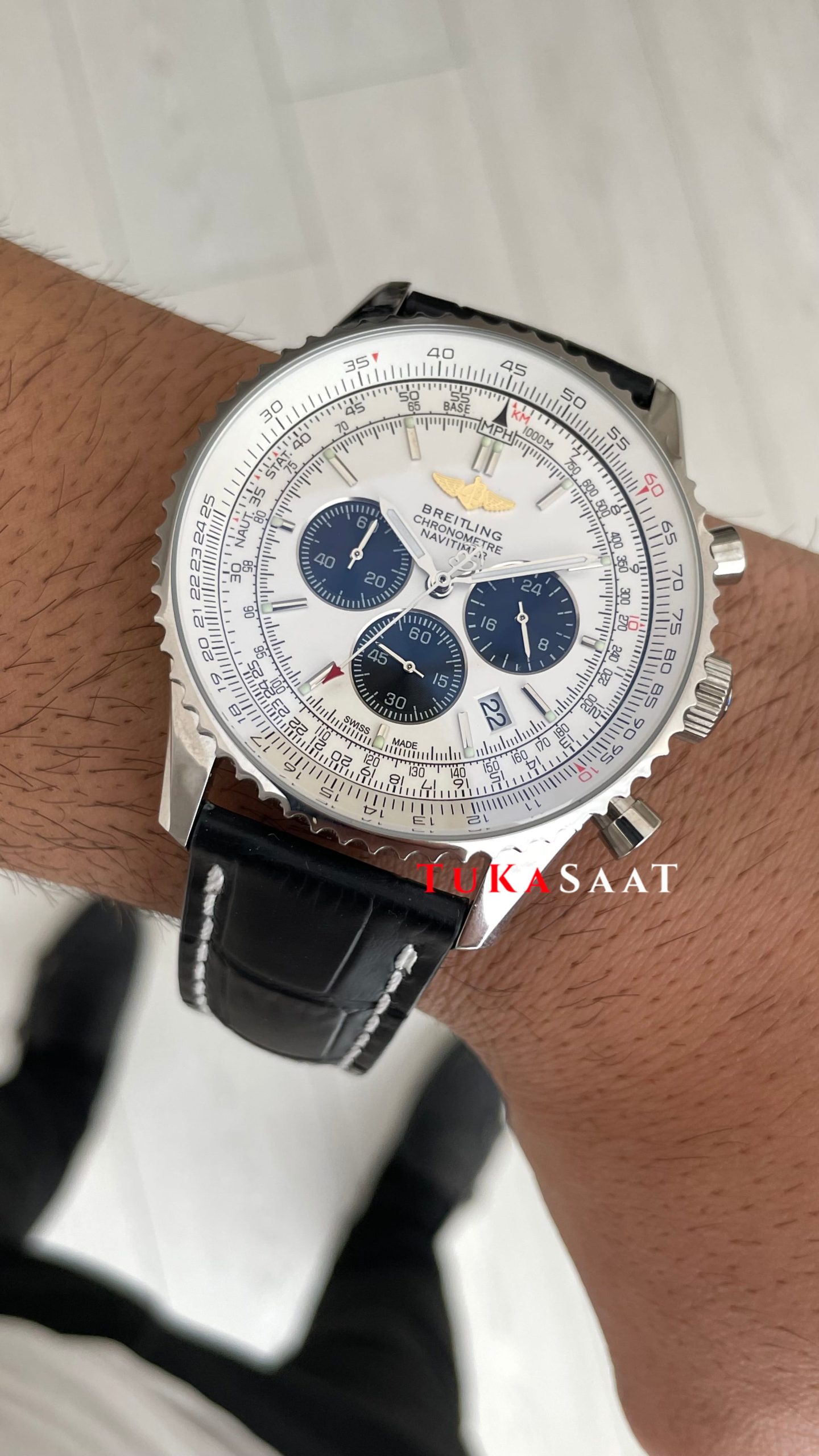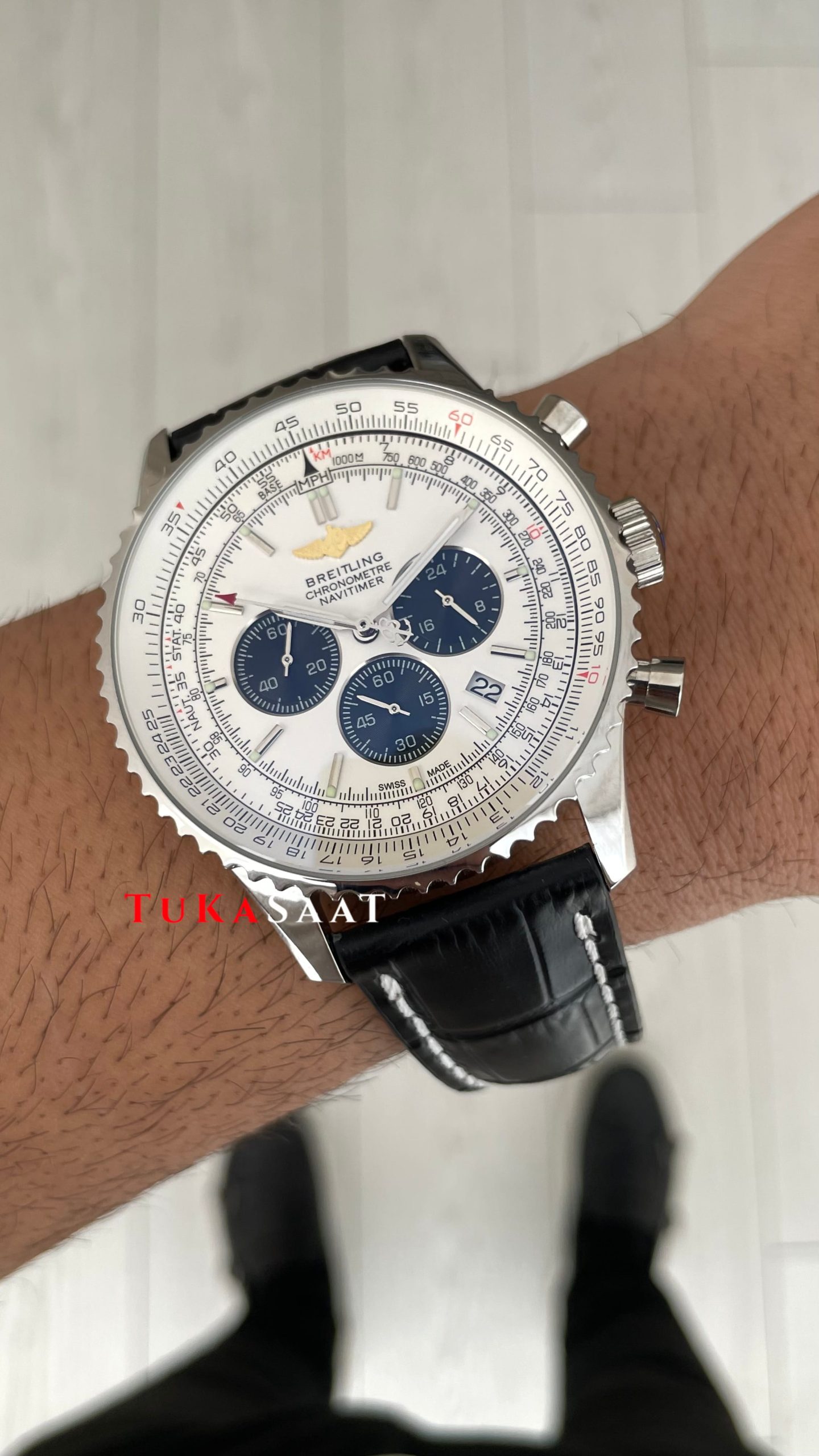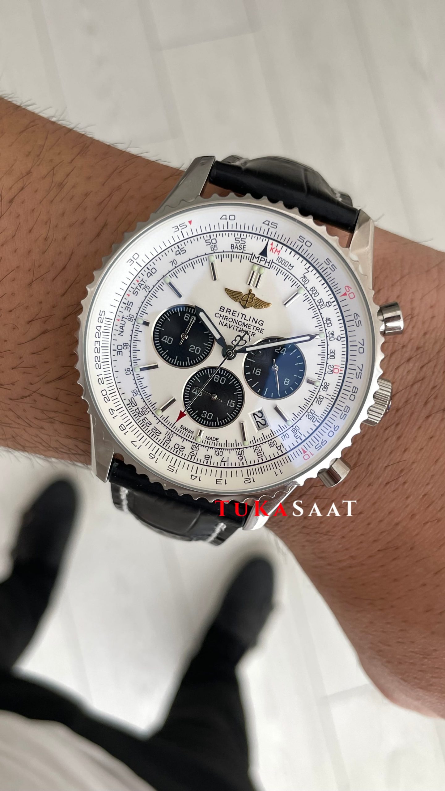 Breitling Navitimer B01 Chronograph Panda AB0127 Beyaz Kadran 45mm Erkek Kol Saati tasarımı, havacılık ve yarışçı ruhuyla modern çizgileri bir araya getirerek her nesilden saat tutkunlarının vazgeçilmezi olmayı başarmıştır. İnce tasarım çizgilerini modern ayrıntılarıyla harmanlayarak bilekte zarif bir görünüm sunar. El işçiliği ve mükemmeliyetçi tasarımıyla her zaman kendine en ön sıradan yer ayırtmayı başaran Breitling markası, Navitimer tasarımıyla bizim vitrinimizin yüzü olmayı başarmıştır. Breitling Navitimer serisinde ki; tırtıklı döner bezelindeki ince ve derin uçlu yivleri ile düz ve rakamlı indeksleri markasının imza niletiğinde olmasıdır.