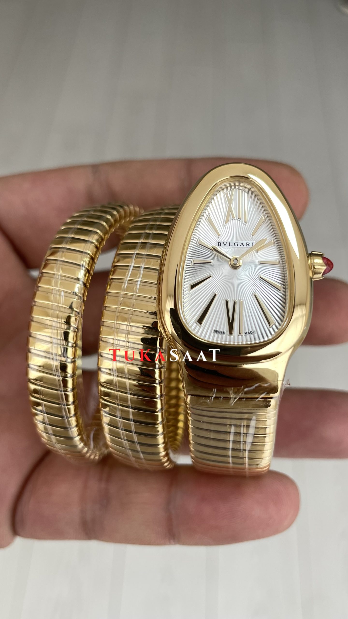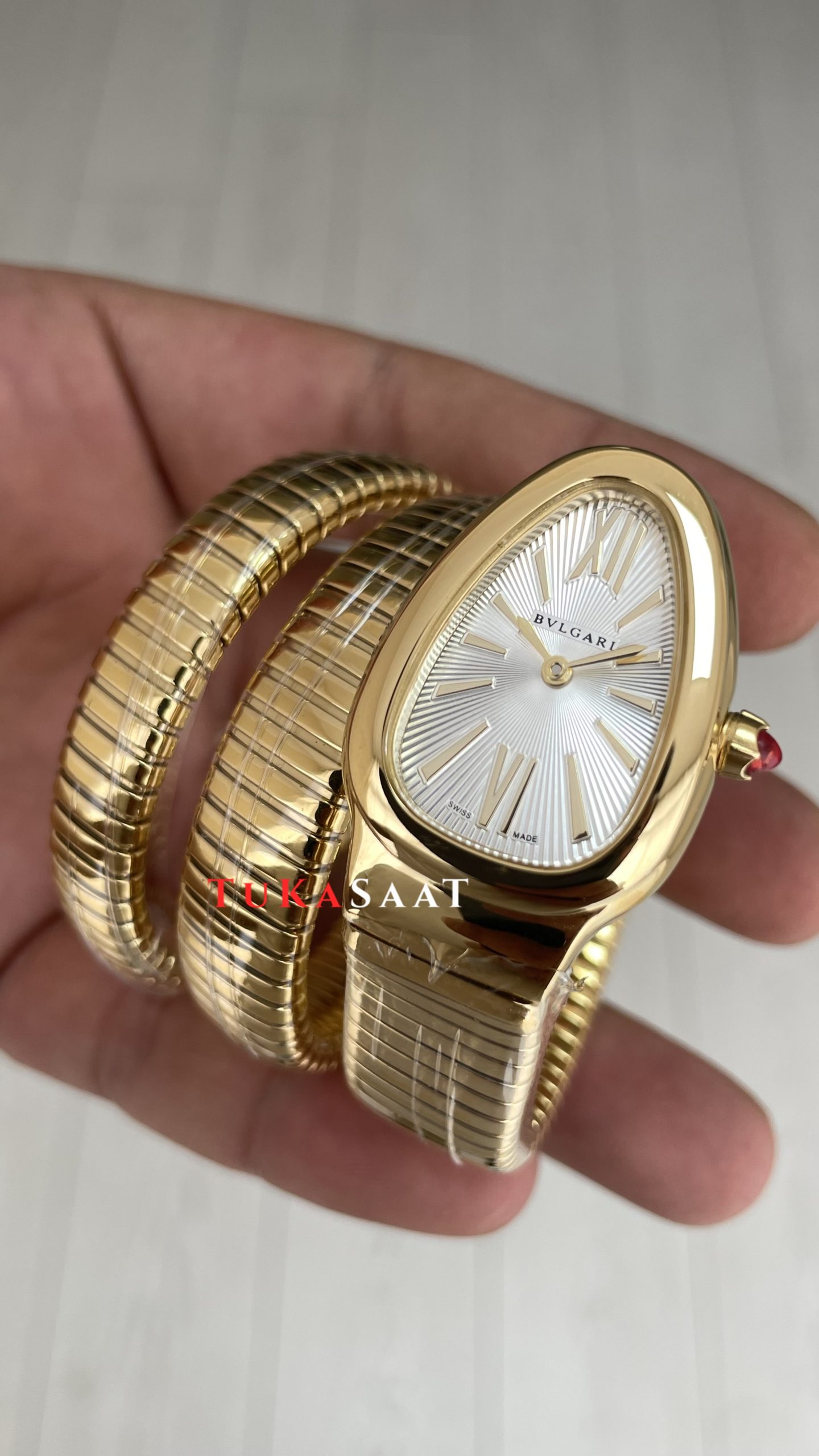 Bulgari Serpenti Tubogas Beyaz Kadran 101923 Gold 35mm 3 Sarmalı Kadın Kol Saati ! Zarafetin Efsanevi İhtişamı