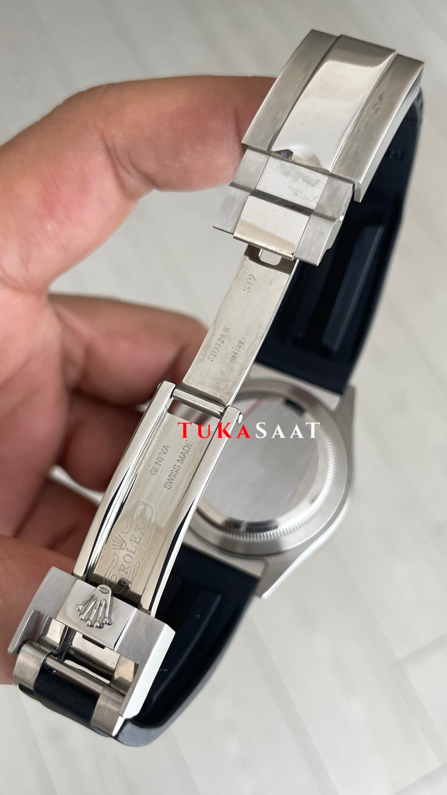 Rolex Daytona Siyah 126500LN Kauçuk 40mm Replika Saat modelinin diğer bir özelliği ise biri ise; Oyster bilezikleri için tasarlanmış Oysterlock Tokalı olmasıdır. Tokalı entegre edilmiş olan Easylink konfor uzatma bağlantısı kolay ve kullanışlı bir konfor sunarak 5mm daha uzatabilir yapıya sahiptir. Kendisini diğer Rolex saat modellerinden ayıran en belirgin özellikleri ise; Parlak mat çelik kasa ve bileziği, cerachrom seramik bezeli, vidalı butonları, kronometreli kadranı,