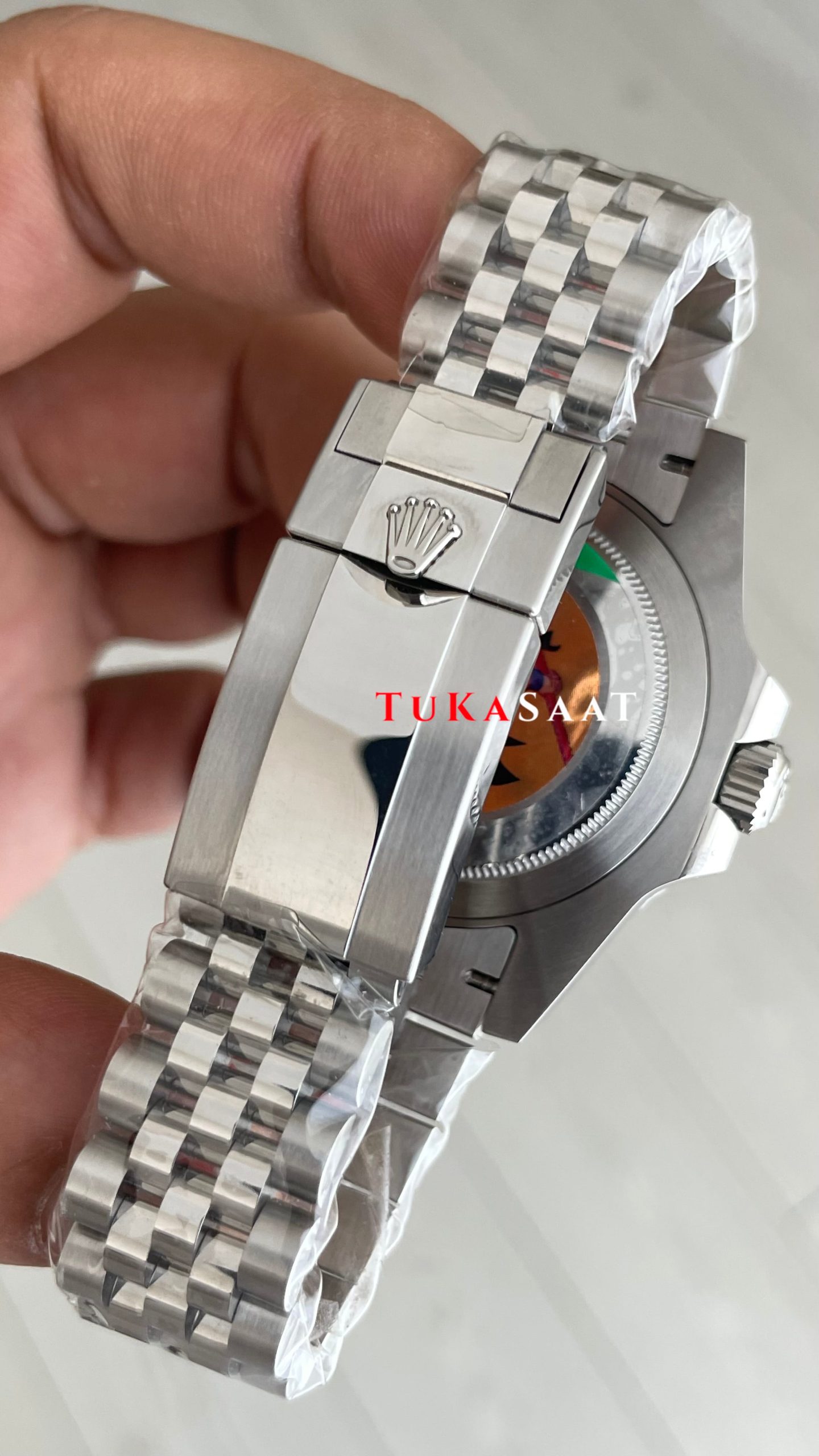 Rolex Pepsi Gmt Master II 126710BLRO Jubilee 40mm DD3285 Swiss ETA Saat AR Factory modelinin diğer bir özelliği ise biri ise; Jubilee ve Oyster bilezikleri için tasarlanmış Oysterlock Klipsli olmasıdır. Klipse entegre edilmiş olan Easylink konfor uzatma bağlantısı kolay ve kullanışlı bir konfor sunarak 5mm daha uzatabilir yapıya sahiptir.