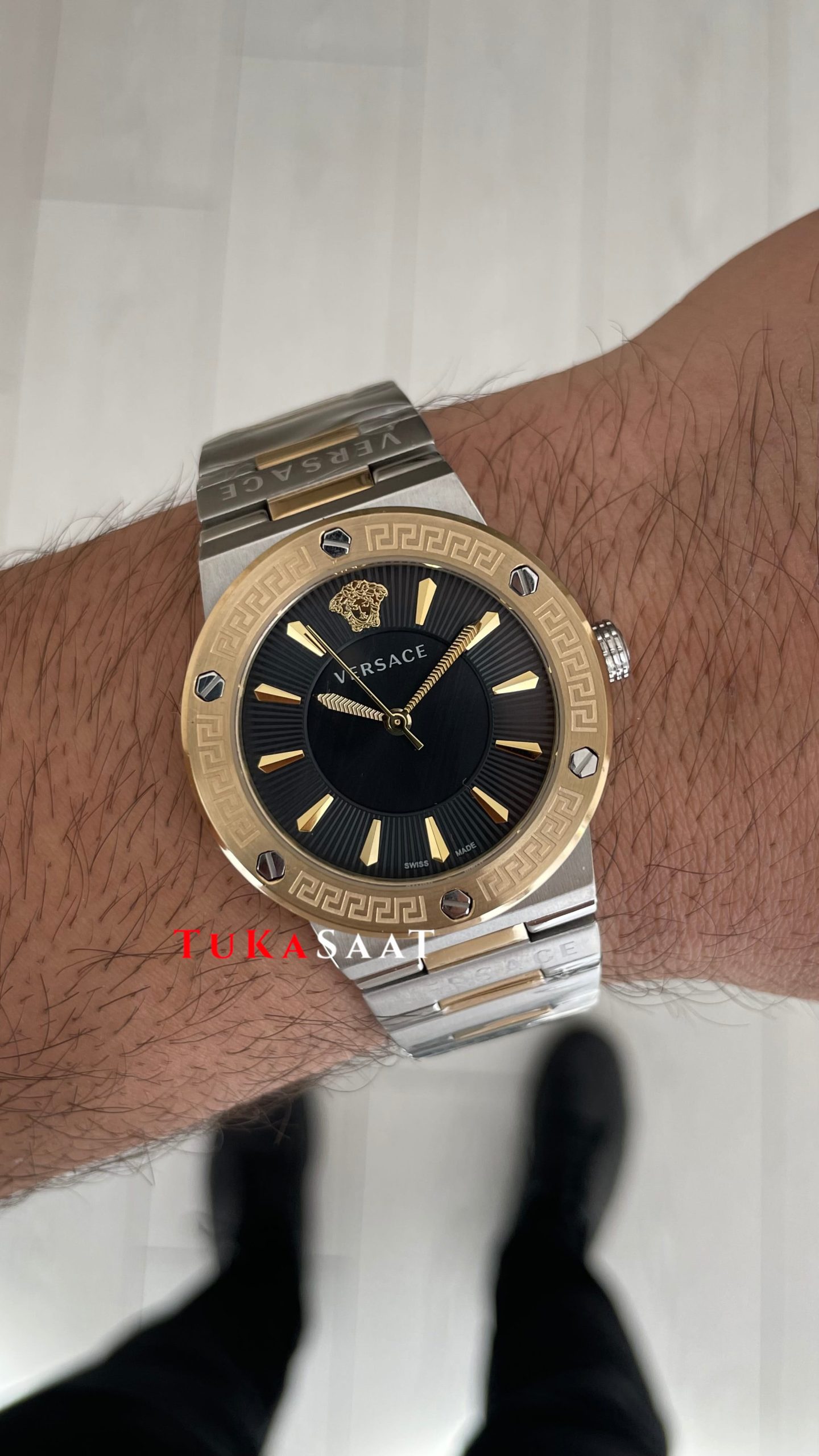 Versace Greca Logo Siyah Kadran 38mm Two Tone Gold Kadın Saati ! Yüksek Hassasiyetin ve Gücün Buluşması